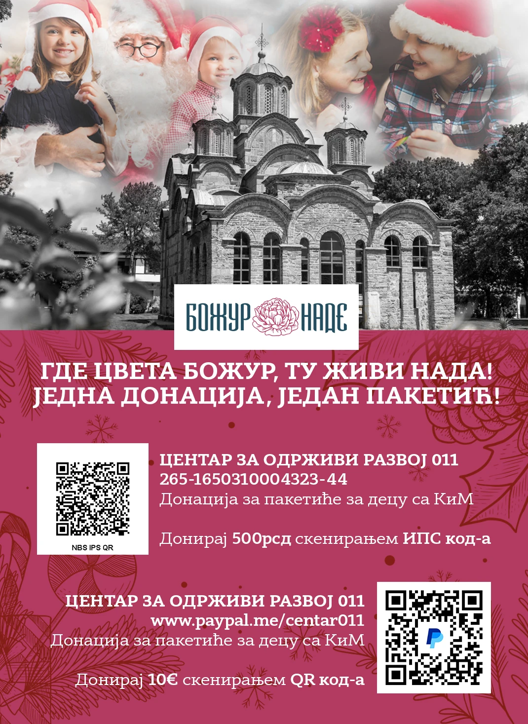 Projekat Božur nade predstavlja drugi veliki projekat Centra za održivi razvoj u 2025. godini. Nastao je iz potrebe da se pruži kontinuitet brizi o najugroženijoj deci i porodicama sa Kosova i Metohije, koje već godinama žive u uslovima daleko od osnovnih standarda. Naša misija je da im tokom cele godine obezbedimo podršku, a posebno deci omogućimo radost kroz novogodišnje paketiće i kompletan školski pribor za početak školske godine.